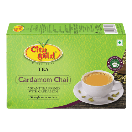 City Gold Cardamom Chai Premix of strong chai with a delicate but refreshing Cardamom flavour. It is a magnificent blend that satisfies your taste buds. You know your day is already made, when it starts with Cardamom Chai. It's truly said, coming back home is not necessary to feel at home. Whether it's homely cuddles or solo travel; 9am to 5pm job or work from home; ghar- jaisi-desi chai can be made just by adding hot water.